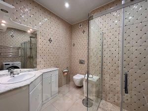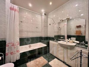 Квартира с дизайнерским ремонтом оснащена всем необходимым для комфортной жизни. Большая кухня площадью 18 кв. м идеально подходит для семейных ужинов. В квартире есть кондиционер, холодильник, посудомоечная машина, телевизор и стиральная машина. В комнатах установлена мебель, а также предусмотрены 2 совмещенных санузла с ванной и душевой кабиной. Три лоджии предлагают дополнительное пространство для отдыха и хранения.