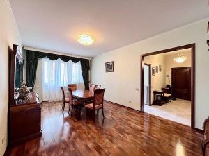 Ищете просторную квартиру в аренду в удобном районе? Вашему вниманию предлагается великолепная 4-комнатная квартира площадью 165 кв. м, расположенная на 3-м этаже 9-этажного кирпичного дома 1998 года постройки. Высокие потолки высотой 3 метра создают ощущение простора и света. До ближайшего метро всего 9 минут пешком, что делает перемещение по городу удобным и быстрым.