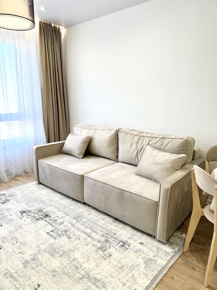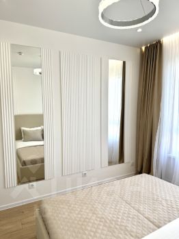 Квартира полностью мебелирована и укомплектована! Имеется все для комфортного проживания , кухня с встроенной техникой , холодильником , микроволновой печью , духовым шкафом , полноразмерной посудомоечной машиной , варочной панелью, диван , тв зона , письменный и обеденный столы, спальня с двухспальной кроватью и ортопедическим матрасом Аскона, два больших шкафа ( в спальне и прихожей ), зеркала, подсветки потолков , встроенные светильники , стиральная машина , пылесос ,кондиционер.