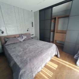 Квартира с качественным ремонтом, который собственник делал для себя, с большим вниманием к деталям и комфорту. В отделке использованы натуральные и премиальные материалы: пол из натурального дерева, микробетон на стенах, керамогранит в ванной, встроенный карниз, скрытые плинтусы с подсветкой, качественная фурнитура и стильные аксессуары.