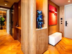 в отделке широко использовано натуральное дерево — от напольных покрытий до декоративных элементов;