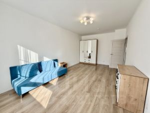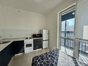 Квартира продуманной планировки: просторная комната, удобная кухня и лоджия, где можно обустроить зону отдыха или рабочее место.