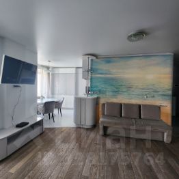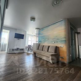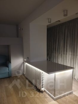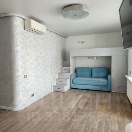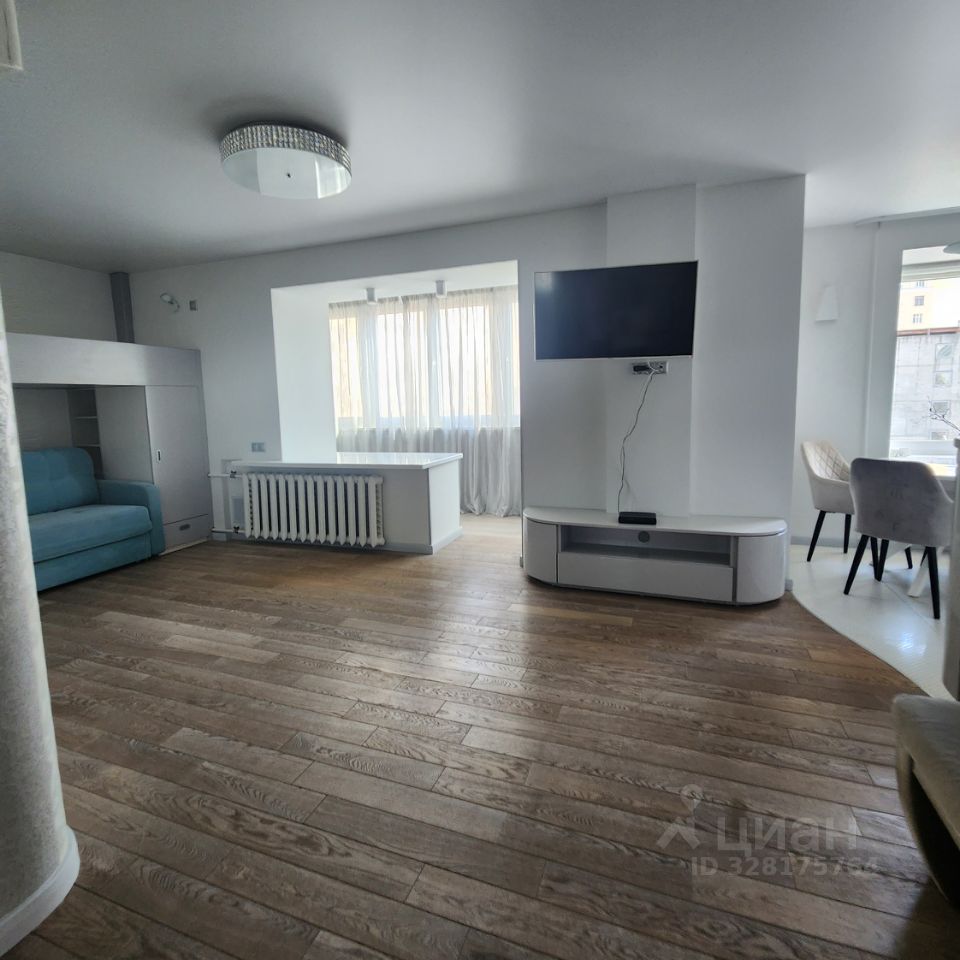 Просторная гостиная объединённая с кухней и утеплённым балконом (где располагается удобная рабочая зона). Большие удобные шкафы, раскладной диван, ЖК телевизор.