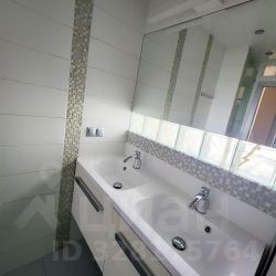 Удобный санузел с двойной раковиной, небольшой ванной и стиральной машиной. Так же есть утюг с гладильной доской и сушилка для белья.