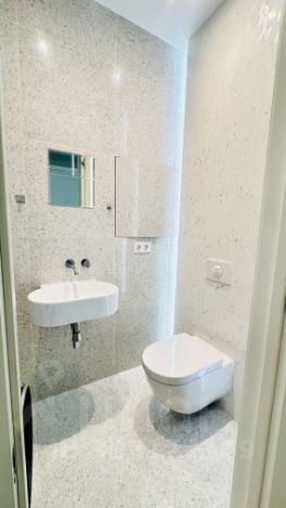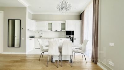 В квартире выполнен дизайнерский ремонт. Кухня укомплектована всей необходимой мебелью и премиальной техникой, включая встроенный холодильник, духовой шкаф, микроволновую печь, посудомоечную машину. В квартире два санузла, оборудованных сантехникой Villeroy&Boch, один совмещенный и один отдельный, укомплектованный стиральной и сушильной машинами.