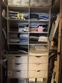ГАРДЕРОБНАЯ с встроенными полками и шкафами. Утюг, гладильная доска, пылесос.