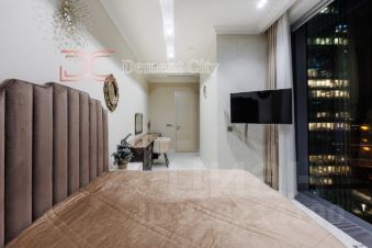 Функциональная планировка: Угловая гостиная совмещенная с зоной кухни и обеденной зоной, изолированная угловая спальня, холл, ванная комната, хоз/блок. Эксклюзивный Дизайнерский ремонт, качественные материалы, дорогая мебель на заказ! Система умный дом, шторы и блэкаут управляются с пульта, встроенная звуковая система, сплит/система, канальная вентиляция.