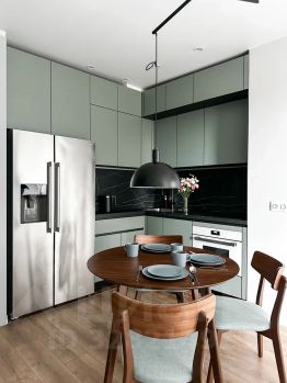 Бытовая техника: посудомоечная машина, кондиционер, стиральная машина, сушильная машина, холодильник, варочная панель, духовой шкаф, электрический чайник.