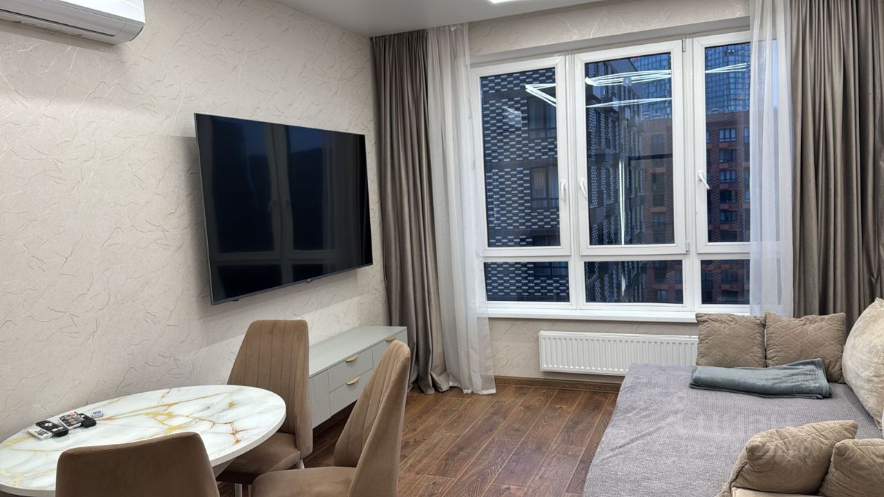 В квартире выполнен дизайнерский ремонт, что подчёркивает её современный стиль и комфорт. Установлена вся необходимая техника: кондиционер, холодильник, посудомоечная и стиральная машины, а также телевизор. Мебель размещена как на кухне, так и в комнатах, поэтому сразу можно заселяться и чувствовать себя как дома. Санузел совмещённый, оборудован ванной. Из окон открывается вид как на улицу, так и во двор, а на балконе можно наслаждаться свежим воздухом.