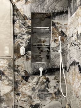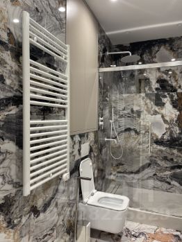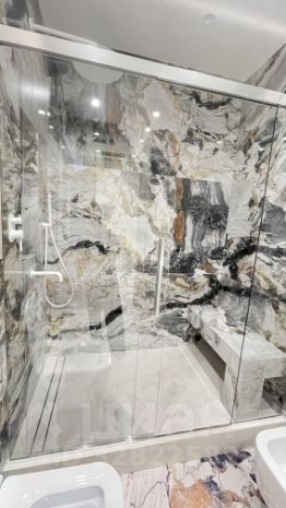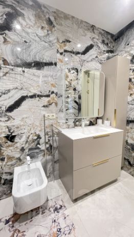 - основной санузел с большой душевой, биде, унитазом, раковиной с встроенными шкафами и большим зеркалом;