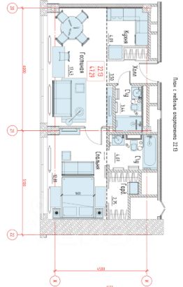 - Площадь 47,3 м², 22 этаж.