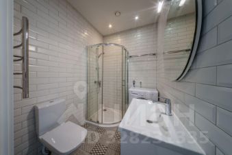 В квартире один совмещенный санузел с душевой кабиной, раковиной, зеркалом с подсветкой и стиральной машиной.