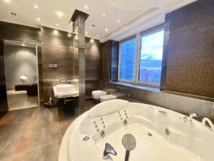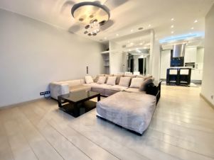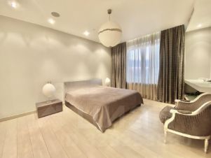 Квартира с дизайнерским ремонтом в стиле-модерн. Функциональная планировка квартиры: гостиная объедененная с кухонной зоной и уютная спальня со своим санузлом и большой гардеробной комнатой. Квартира полностью укомплектована мебелью и бытовой техникой. ЗАХОДИ И ЖИВИ!!! Есть все необходимое для комфортного проживания!!! ДВА полных санузла оборудованные европейской сантехникой с отделкой мрамором. Постирочная со стиральной и сушильной машинами, бойлер. Полы с подогревом. Установлены кондиционеры, интернет. В квартире царит приятная атмосфера. Огороженная, охраняемая территория с пропускной системой. Подземный паркинг.