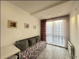 Сдаётся стильная однокомнатная квартира с евроремонтом в новом монолитном доме 2019 года постройки. Общая площадь квартиры составляет 28 кв. м, жилая площадь 10 кв. м, кухня 10 кв. м. Квартира находится на 12-м этаже 15-этажного дома, с высотой потолков 2.8 метра. Окна выходят во двор, поэтому в квартире всегда тихо и уютно.