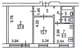 — 2 изолированные комнаты 22,8м2+ 13,7м2;