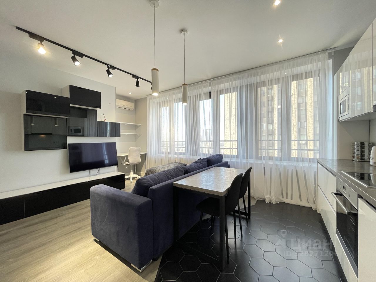Квартира с дизайнерским ремонтом полностью готова к комфортному проживанию. В наличии вся необходимая мебель: в комнате и на кухне.