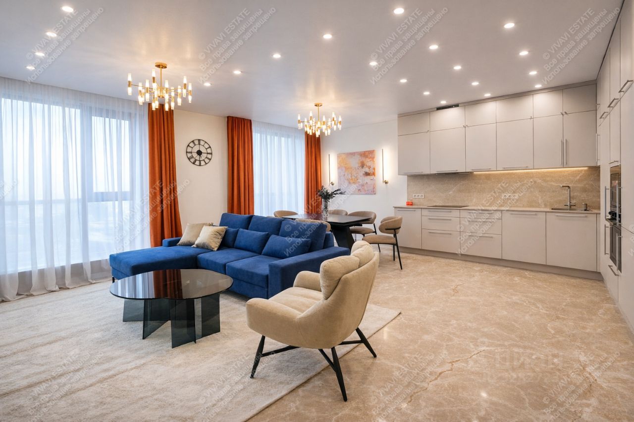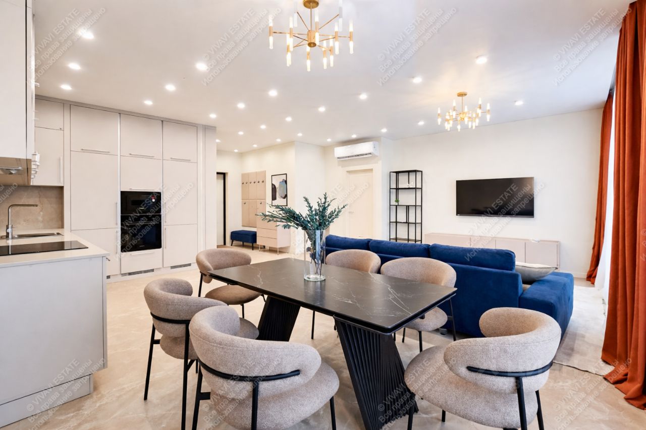 Здесь всё выстроено вокруг удобства: отдельная мастер-спальня для уединения, детская, кабинет, гардеробная, постирочная — пространство не перегружено, а логично структурировано. В квартире установлен бризер.