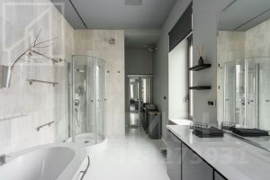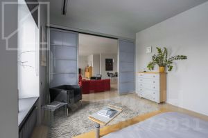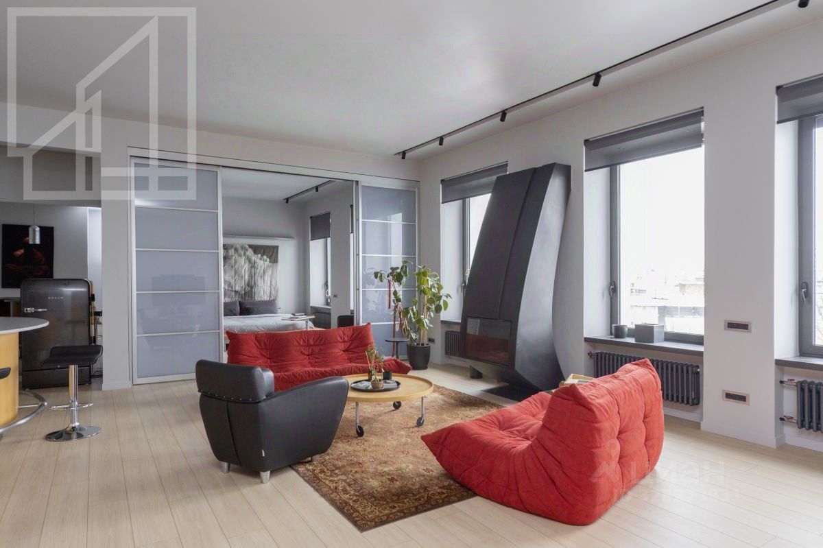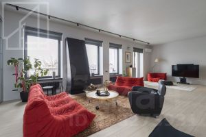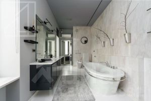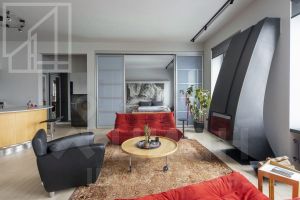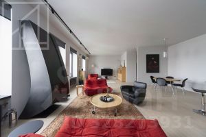 Планировка: кухня, гостиная, спальня, полноценная ванная комната с душевой кабиной и ванной, а также гостевой санузел, балкон. Есть гардеробная комната. Общая площадь - 120 кв.м. Современный ремонт выполнен в уникальном авторском стиле с использованием высококачественных материалов. Квартира укомплектована всей необходимой мебелью (Ligne Roset, Philippe Starck) и техникой и полностью готова к заселению. Есть настоящий действующий камин. Окна выходят в спокойный, тихий двор.