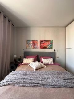 В комнатах: новые встроенные шкафы для хранения, двуспальная кровать с ортопедическим матрасом Аскона, раскладывающийся кожаный диван Италия, ЖК телевизор SAMSUNG.