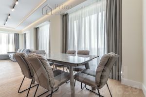 Установлена итальянская кухня со встроенной бытовой техникой премиальной марки NEFF, канальная система центрального кондиционирования на базе чиллер-фанкойл с пультами управления в каждой комнате, в санузлах теплые полы, в постирочной стиральная и сушильная машины LG, бойлер.
