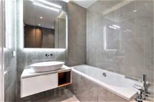 ** ванная комната с душевой кабиной,