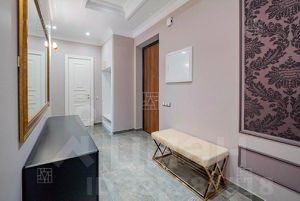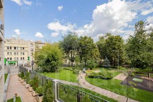 Планировка: просторная гостиная совмещённая с кухней, четыре спальни, один санузел с ванной и два санузла с душевой, две функциональные гардеробные, кладовая для хоз.инвентаря, балкон в одной из спален с панорамным видом на зелёный сквер и Хилков переулок.