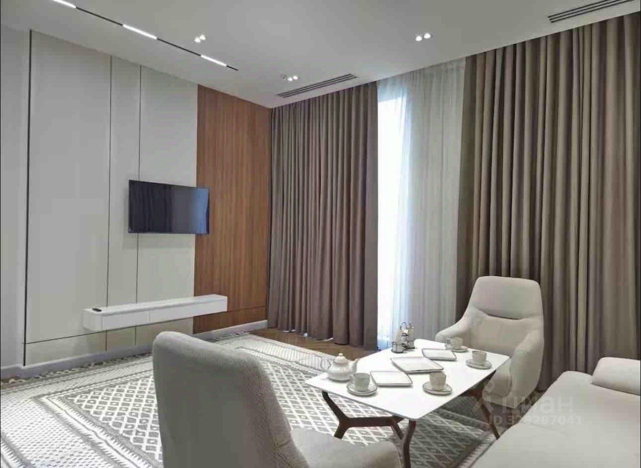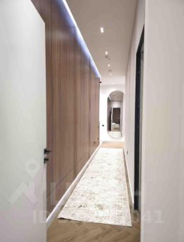 Дизайнерский ремонт выполнен в современном стиле. В интерьере использованы изысканные и продуманные решения. В квартире есть несколько гардеробных (в мастер-спальне - две, во второй спальне - собственная гардеробная, а также большая гардеробная в прихожей) и два санузла с душевыми кабинами. Также имеется просторная постирочная комната.