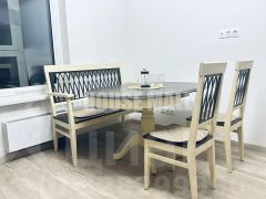 Выполнен качественный ремонт с использованием натуральных материалов. Мебель из массива дерева, интерьер в спокойной классической эстетике. Спальня дополнительно шумоизолирована. Установлены три кондиционера, окна с повышенной звукоизоляцией, утепленная лоджия.