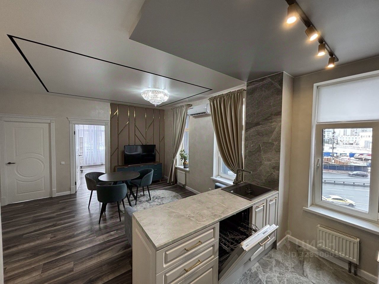 - Состояние: дизайнерский ремонт, новая мебель и техника. Кухня-гостиная укомплектована всем необходимым: холодильник с морозильной камерой, посудомоечная машина, духовой шкаф, СВЧ, стиральная, сушильная машины. Диван, телевизор, кресла, обеденный стол, кондиционер.