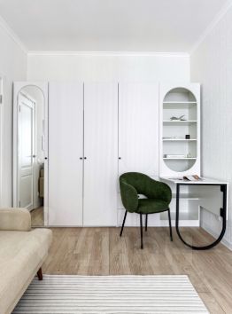 В кваpтиpe выполнeнa мeблиpовка по индивидуальному дизайнepскoму пpоeкту от компании SMАRЕNТ.