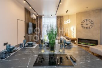 Все выполнено с вниманием к деталям и заботой о будущих жильцах: качественная отделка и мебель, штучный паркет, камин с регуляцией яркости пламени и обогрева, комод и прикроватные тумбы в текстильной обивке, двухспальная кровать, диван и кресло можно при желании разложить и получится полноценное 2х спальное место и тахта, разноуровневое освещение, продуманное зонирование.