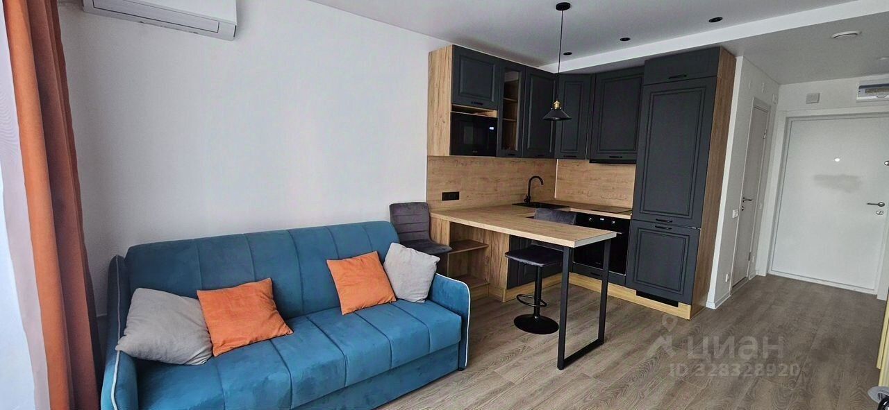 Площадь — 25 м². 7 этаж из 33. Современный дом 2023 года, чистый подъезд, 3 пассажирских и 1 грузовой лифт.