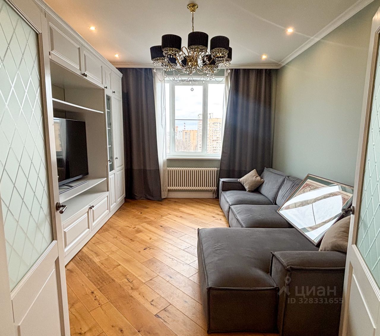 во второй комнате отличная двуспальная кровать, телевизор 58 дюймов, панорамные окна в с видом на Лосинный парк. Площадь 16 м;