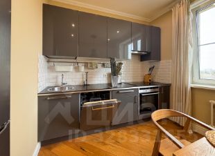 кухонная зона оснащена посудомоечной машиной, духовым шкафом, СВЧ, холодильником, вытяжкой и обеденным столом на 4 персоны. Площадь 10.5 м;
