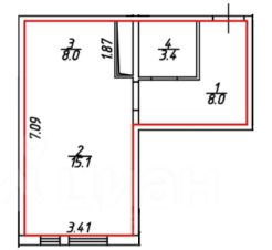 Есть вся необходимая мебель и техника как в комнате, так и на кухне (кондиционер, холодильник и стиральная машина). Ванная комната совмещена и оборудована ванной. Окна - во двор.