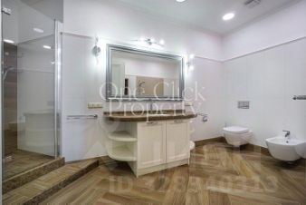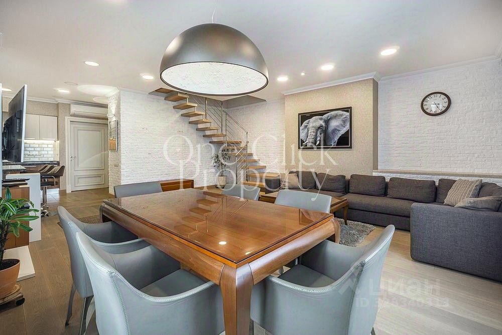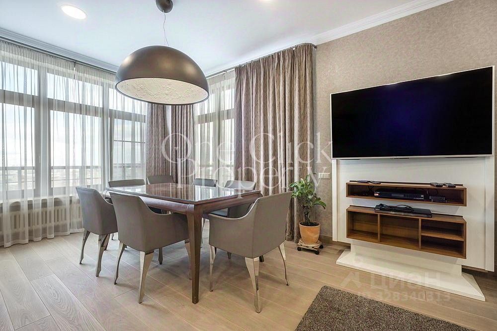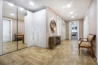 Вашему вниманию предлагается просторная, видовая двухуровневая квартира с 4-мя спальнями общей площадью 290 м в доме "Большой Тишинский, 10". Выполнен дизайнерский ремонт в современном стиле, интерьер оформлен в лаконичных светлых тонах. Окна выходят на 3 стороны света, с панорамными открытыми видами на город. Квартира укомплектована мебелью и современной техникой.