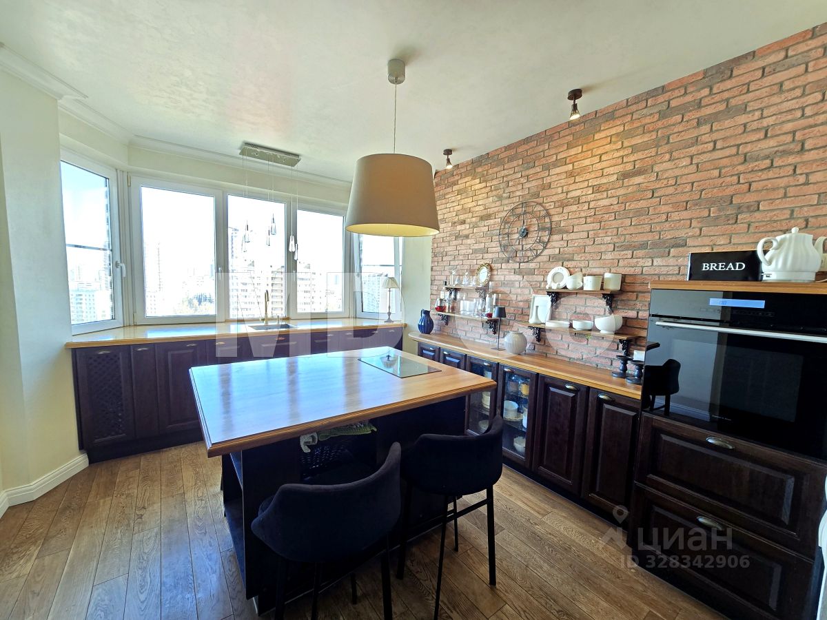 Кухня-мечта: кухонный гарнитур с островом, встроенная техника (включая посудомоечную машину).