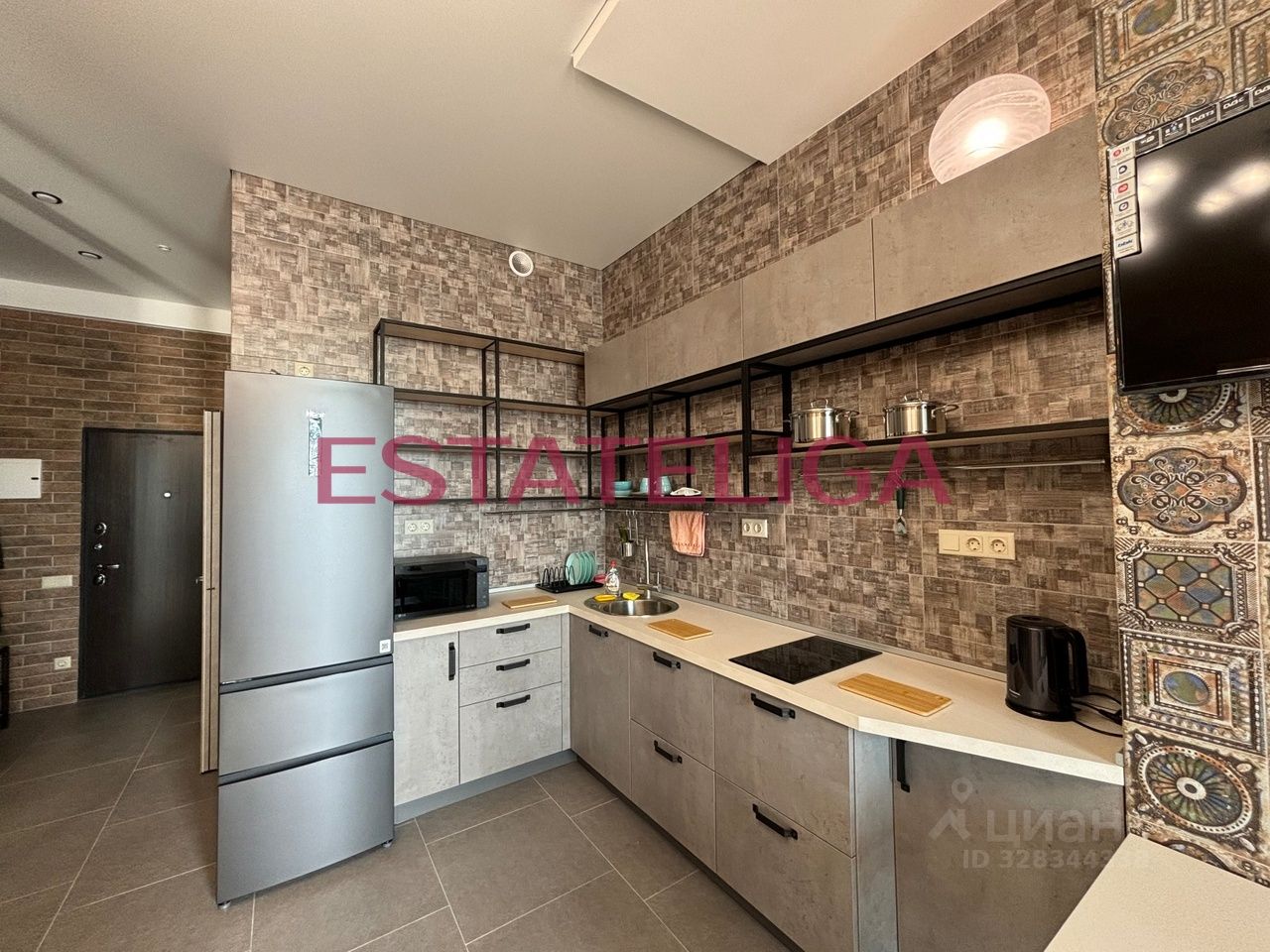 Здесь есть вся необходимая мебель для жизни: диван, обеденный стол, рабочий стол, шкаф с зеркалами. На кухне имеется необходимая техника (холодильник, варочная плита, микроволновая печь, чайник), а также новая посуда. В совмещенном санузле установлена душевая кабина и стиральная машина.