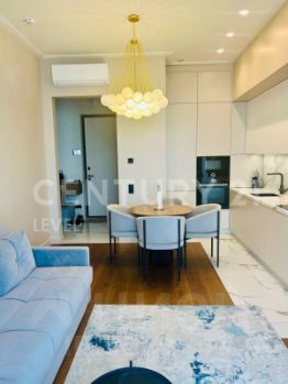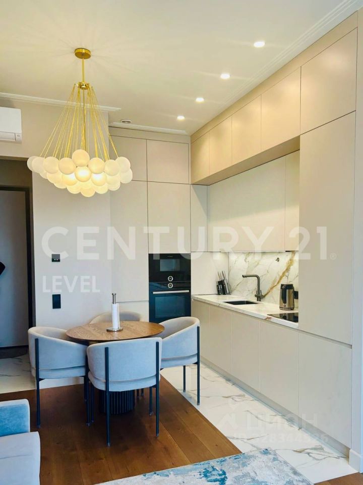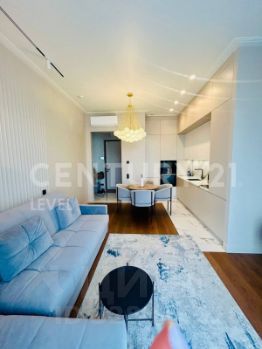 Квартира полностью меблирована, установлена кухня со всей необходимой техникой, вытяжка, варочная панель, печь, холодильник, посудомоечная машинка, кондиционер, стиральная машина с сушкой.