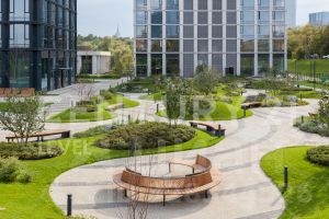 На закрытой охраняемой территории ЖК имеются двор с зонами для отдыха, детские площадки с горками и оборудованием, спортзал, зона йоги, SPA зона, гостиная с миникухней, home office, переговорные.