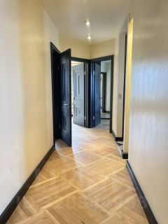 Больше 80м2 площади квартиры занимает великолепный паркет дуб, береза, окантовка красным деревом, по дизайнерскому рисунку.