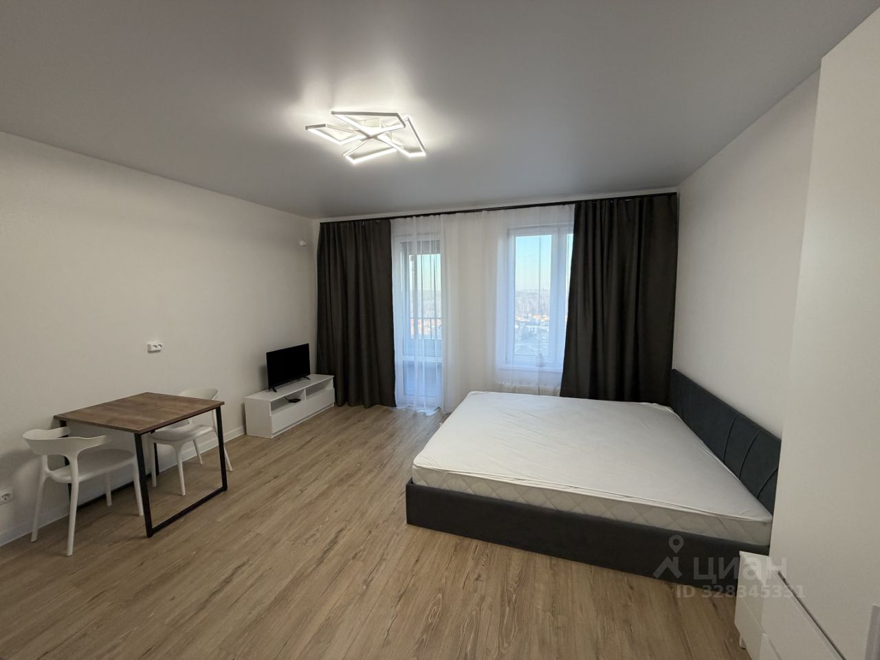 Просторная студия 29.8 метров, с новой мебелью и техникой, с большим балконом с видом на лес на 13 этаже. Рядом в 3 минутах парк и речка. Официальный договор, депозит 40000.