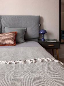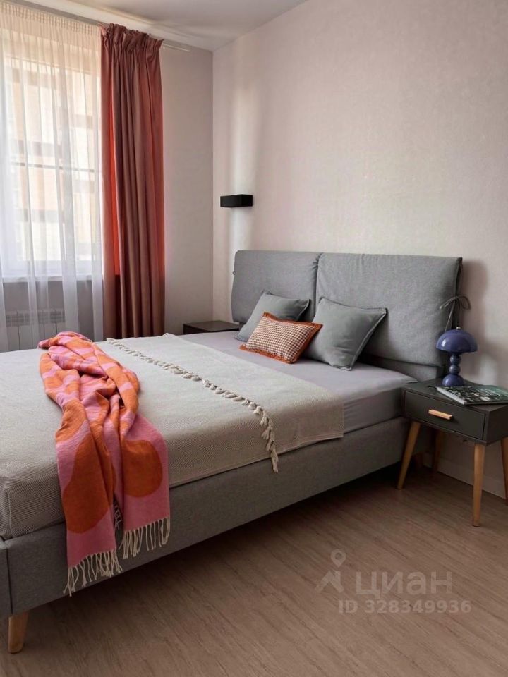 Для сна: комфортная кровать queen size с ортопедическим матрасом (160x200). Для гостей: раскладывающийся двуспальный диван. И ещё: утепленная лоджия с теплым полом, раздельный санузел, продуманное и вместительное хранение вещей, встроенная гладильная доска, рабочий стол.