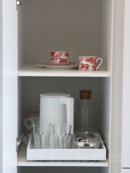 Кухня оборудована функциональной встроенной техникой (холодильник, варочная панель, духовой шкаф, посудомоечная машина). Имеется мелкая бытовая техника, телевизор, стиральная машина.