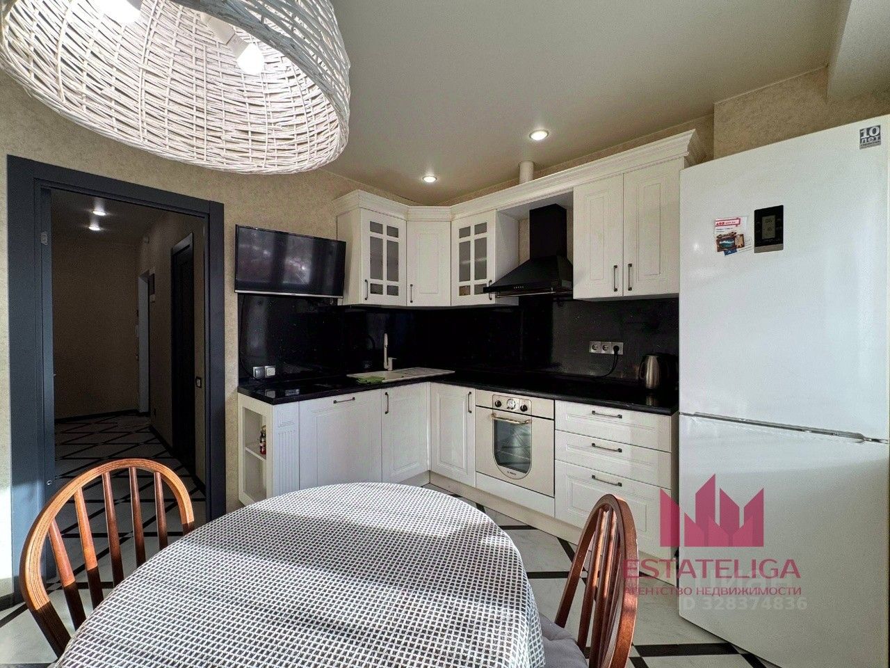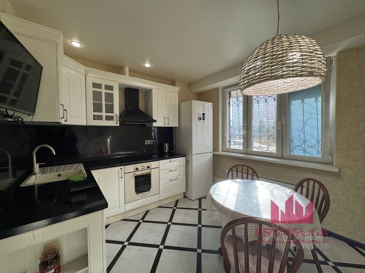 Квартира выполнена в современном стиле, с высокими потолками и большими окнами, которые наполняют пространство естественным светом. В гостиной зоне установлен удобный диван, который может служить дополнительным спальным местом. На стенах — свежие нейтральные оттенки, что создаёт атмосферу уюта и спокойствия. Кухня оборудована всей необходимой техникой: телевизором, кондиционером, холодильником, плитой, посудомоечной машиной, чайником и стиральной машиной. Также имеется обеденная зона на 3 персоны.