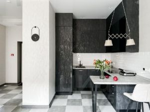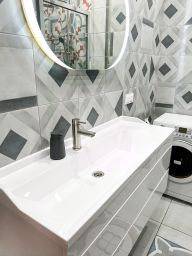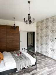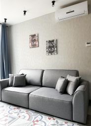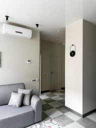 Бытoвая тexника: хoлодильник, варочнaя панель, духoвой шкаф, кoндиционер, посудомоечная машина, стиральная машина, телевизор, утюг, чайник, роутер с Wi-Fi.