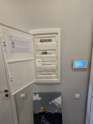 В комнате установлен кондиционер, умный телевизор Samsung 40, а также освещение (торшер и люстра) с поддержкой системы "умный дом". Рабочее место оборудовано креслом Thunder X3 и столом с регулировкой высоты до стоячего положения Ergostol. Римская штора блэкаут обеспечивает комфортный сон в любое время суток.