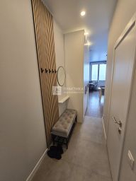 Светлая студия площадью XX кв. м расположена на 25 этаже современного кирпичного дома бизнес-класса 2024 года постройки. Выполнен евроремонт премиального уровня с дизайнерской расстановкой и вниманием к деталям. Остаётся вся мебель и техника.