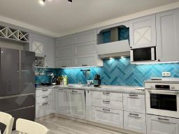В квартире выполнен дизайнерский ремонт, что создает атмосферу уюта и комфорта. Просторная кухня -гостиная с зоной отдыха,площадью 20 квадратных метров оборудована всей необходимой техникой: холодильником, посудомоечной машиной ,духовым шкафом,-мягкой мебелью.В квартире установлен кондиционер большой мощности.Вся квартира оборудована мебелью,что делает переезд максимально удобным. Две детских комнаты и мастер-спальня(с санузлом).В квартире два совмещенных санузла.Имеется гардеробная,достаточное количество мест хранения.