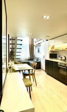 Апартаменты полностью готовы к проживанию, со всей мебелью, техникой и элементами дизайна. Площадь 1 этажа 24,5 м, второй 16 м.